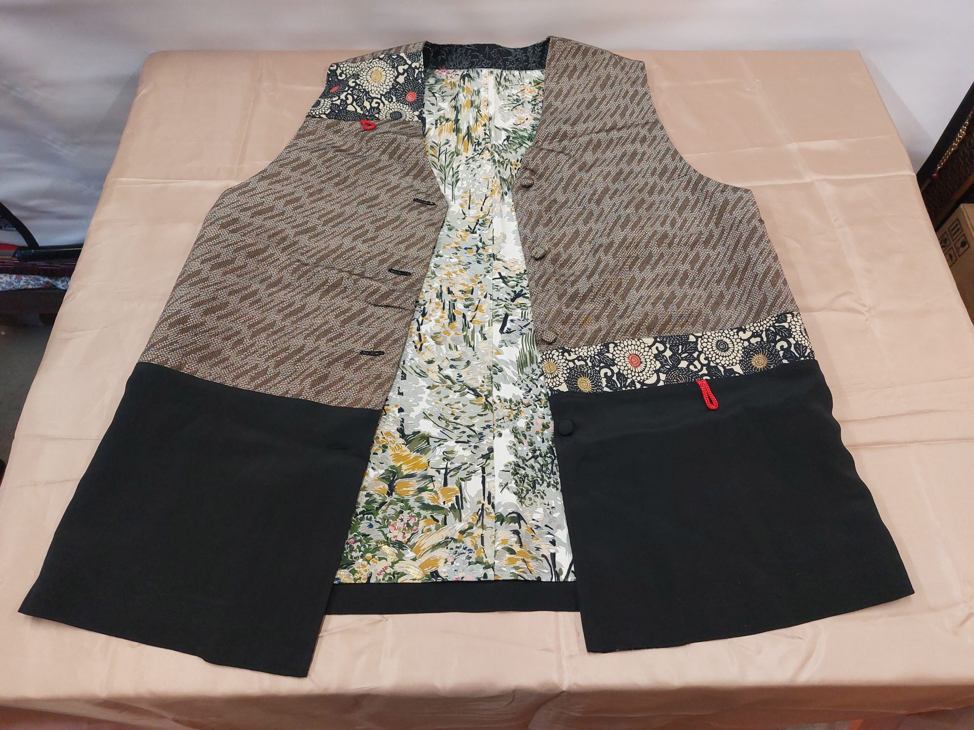紬を使用して、花の部分はウーらルですが黒部分はシルクです。裏地も色を使用して遊んたで見ました。 カテゴリー: 着物リメイク 工房八国山 長い年月を過ぎてリメイクのお仕事をさせていただいております。私達、工房八国山は古布を使用させていただき新しいデザインを考え、お客様に喜んでいただける商品を制作させていただきます。